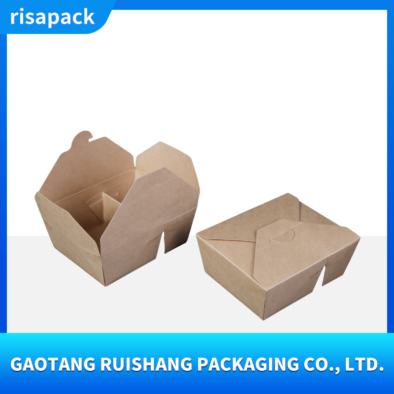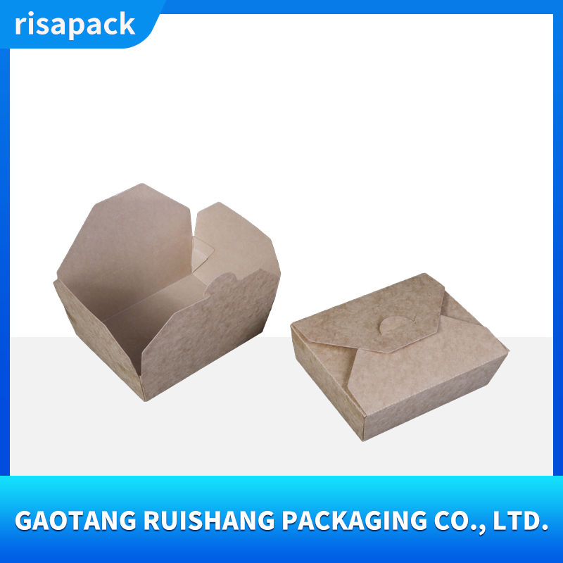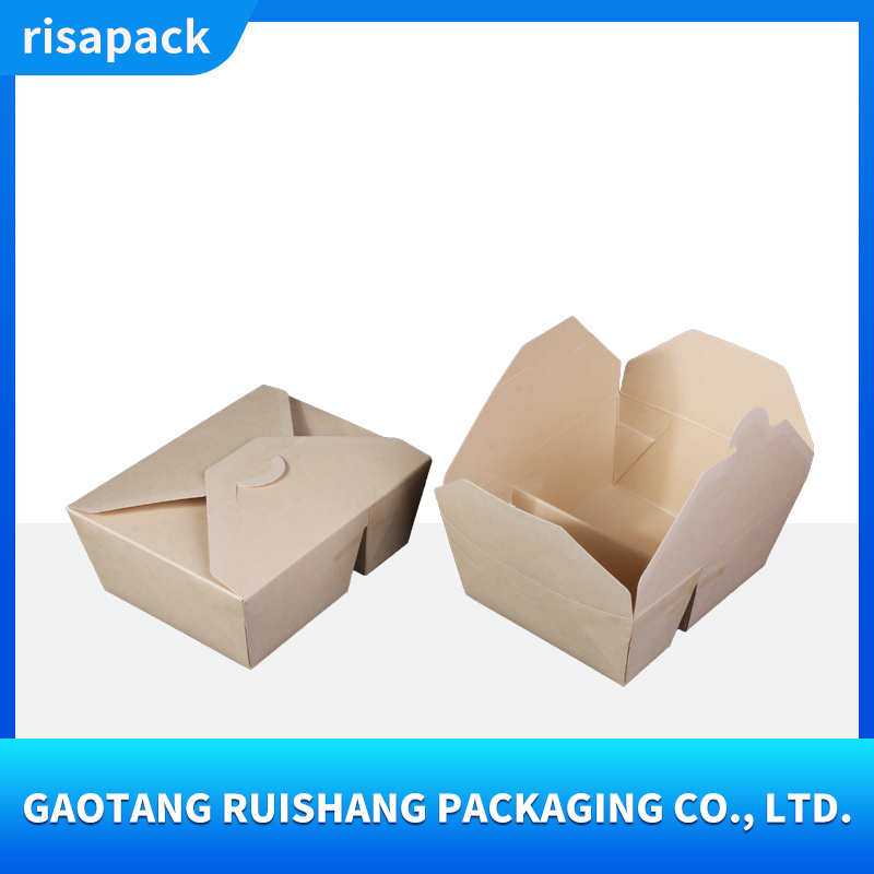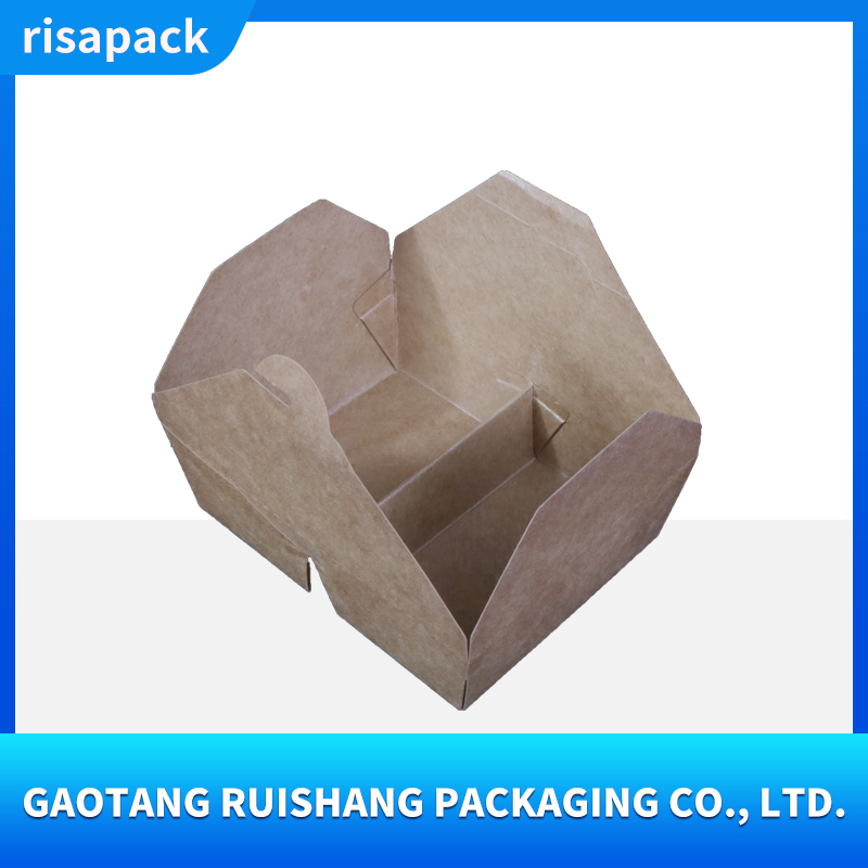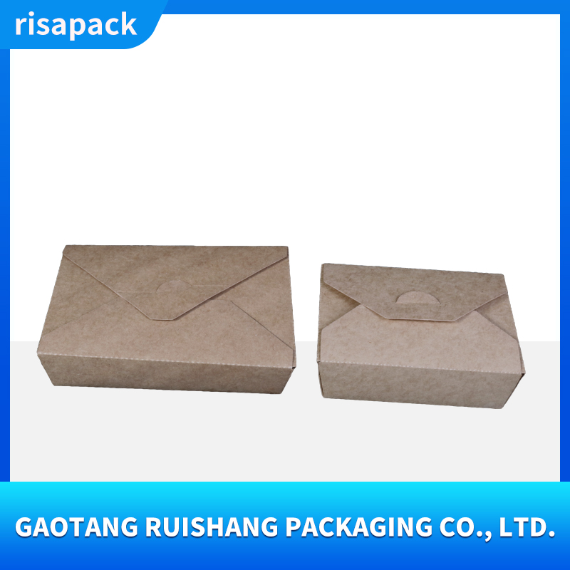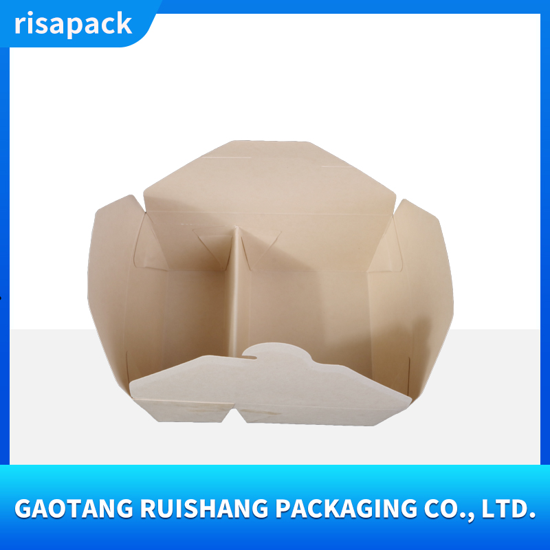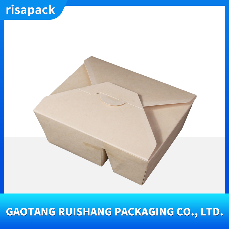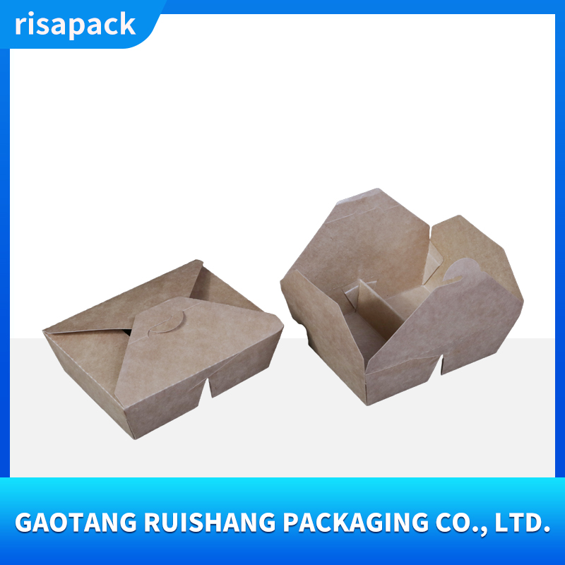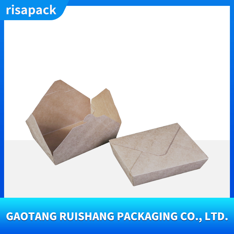 This kraft paper takeout box is made from food-grade virgin wood pulp, making it naturally degradable. It has a thick and sturdy texture and supports customized printing such as brand logos, ingredient descriptions, etc.